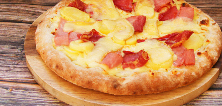 Crème fraîche. mozzarella. jambon supérieur. pomme de terre. Coppa (charcuterie italienne). fromage à raclette